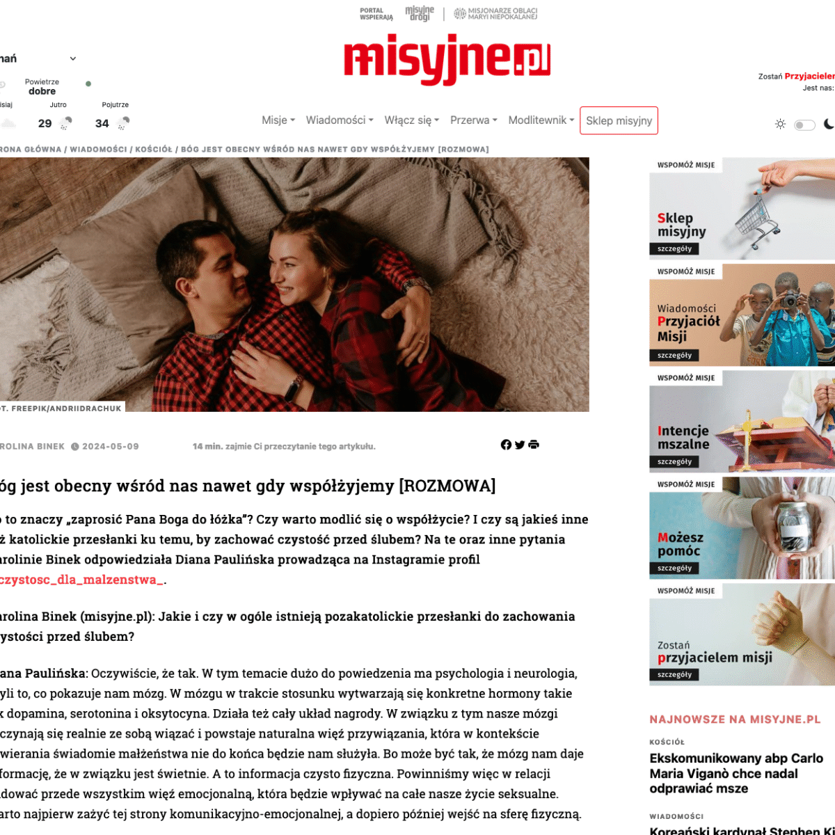 Co to znaczy „zaprosić Pana Boga do łóżka”? Czy warto modlić się o współżycie? I czy są jakieś inne niż katolickie przesłanki ku temu, by zachować czystość przed ślubem? Na te oraz inne pytania Karolinie Binek odpowiedziała Diana Paulińska prowadząca na Instagramie profil @czystosc_dla_malzenstwa