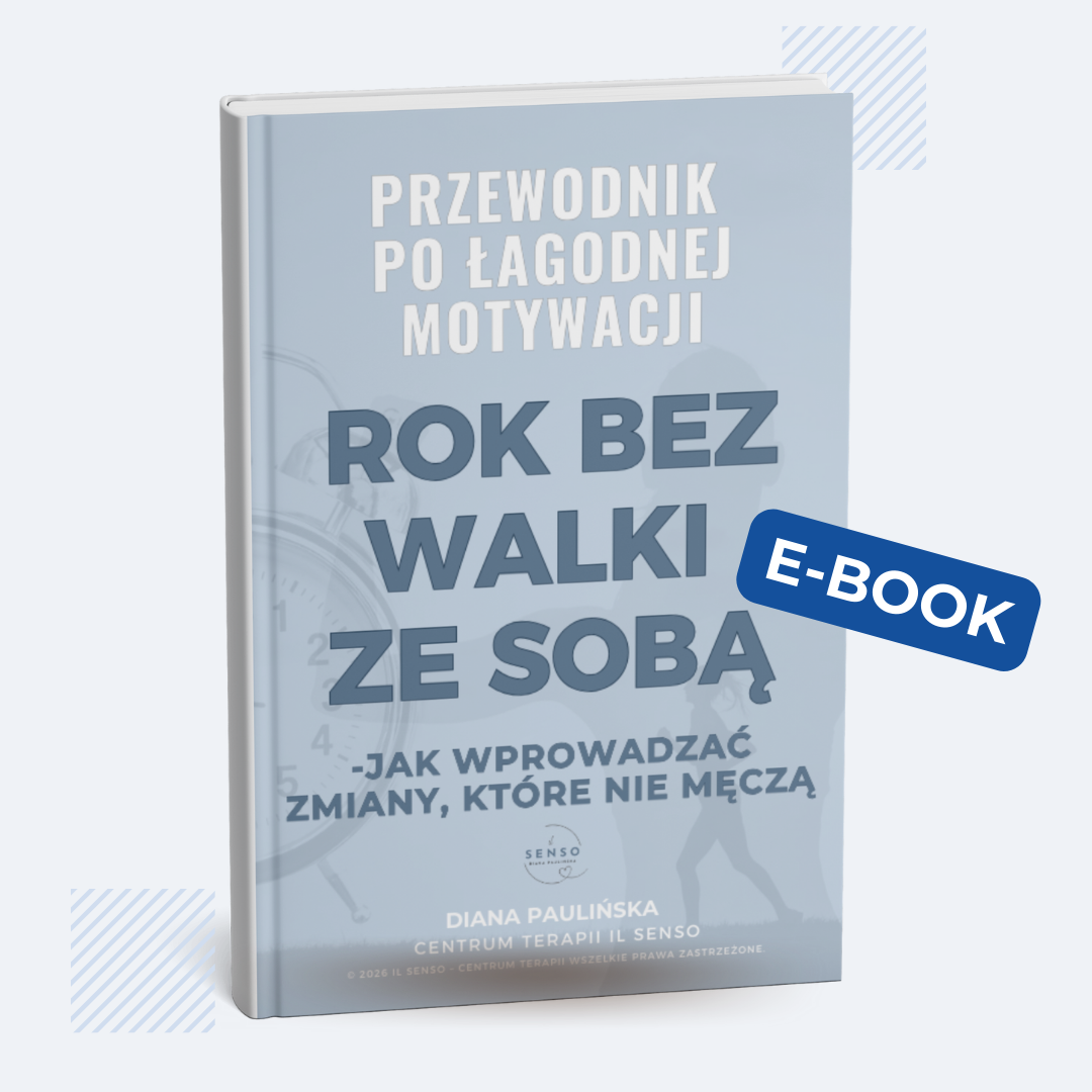 „Rok bez walki ze sobą” to e-book dla osób, które są zmęczone ciągłym poprawianiem siebie, presją rozwoju i wewnętrznym krytykiem. To zaproszenie do zmiany perspektywy: z walki — na relację, z kontroli — na uważność, z ocen — na ciekawość.